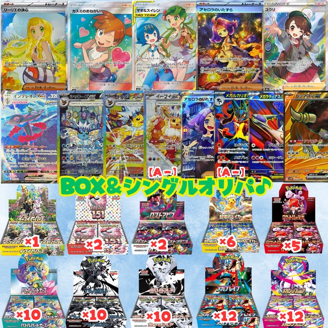第453弾【番号選択式】 【本日最終日!Pay ID ポイント大還元祭!】 ▼キャンペーン期間 2025年10月24日(金)12:00〜26日(日)24:00 ※期間中に、ポイント付与条件を満たしたお買いものが対象です。 ▼エントリー 不要 ▼ポイント付与条件 「Pay IDアプリ」から「Pay ID」でログインし、以下の決済方法でお買いものをすると、ポイントが貯まります。 - 「Pay ID 翌月あと払い」 - 「Pay ID 3回あと払い」 - クレジットカード ▼特典▼ 「Pay ID ポイント」10%還元(上限:30,000ポイント) ※1回のお買いものごとに30,000ポイントまで還元されます ▼ポイント付与時期 通常の「Pay ID ポイント」と同様に、ご請求確定日から30日後に付与されます。 ✅BOX&シングルオリパ♪ ⭐BOXとオリパがそれぞれ1口ずつランダムで付きます。(1口→BOX1口オリパ1口セット) ⭐税込14000円 ⭐【送料730円】宅配便コンパクト ⭐全80口 ⭐SR以上1枚確定(1枚〜2枚入) ・イーブイヒーローズ BOX ・ポケモン151 BOX ・ソルガレオ&ルナアーラgx sa ・リーリエの決心 sar ・リーリエのピッピex sar ・etc. . . ⚠️・メガブレイブ・バトルパートナーズ・ブラックボルト・ホワイトフレアの一部箱に凹みやシュリンク破れ等の【状態Aー】の商品がありますのでご了承ください。 ハズレ【SR以上】 ※4口以上ご購入の場合おまとめして発送致します。 ⭐Boxは全て未開封シュリンク付きです。 ※最近再シュリンク詐欺が横行しております。 こちらでも厳重に警戒しておりますが、実店舗でも再シュリンク品が出回っている現状です。 購入していただいた商品が万が一、再シュリンクの疑いがある商品の場合、(開封後でも大丈夫です。) 全額返金もしくは交換致しますのでご安心下さい。 (その際はメッセージにてご連絡お願い致します) 【注意事項】 以下をご理解・ご了承いただける場合のみご購入お願いいたします。 ※BOXに若干ヨレや凹み等がある場合もあります。完美品ではありませんのでご注意ください。 ※BOXは定価ではなく、ネット相場等のプレ値で作成してあります。(* ᴗ ᴗ)⁾⁾ ※複数ご購入された場合、同じ種類が当たってしまう場合もございます。 ※くじですので当たりはずれがございます。 多く購入すれば必ず当たりが引けるということではない、当たりはずれが均一に出るわけではないことをご理解ください。 ※入金確認後2日〜3日営業以内に発送致します。