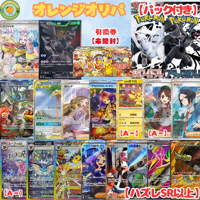 第452弾【番号選択式】 【Pay ID ポイント大還元祭】 ▼キャンペーン期間 2025年10月24日(金)12:00〜26日(日)24:00 ※期間中に、ポイント付与条件を満たしたお買いものが対象です。 ▼エントリー 不要 ▼ポイント付与条件 「Pay IDアプリ」から「Pay ID」でログインし、以下の決済方法でお買いものをすると、ポイントが貯まります。 - 「Pay ID 翌月あと払い」 - 「Pay ID 3回あと払い」 - クレジットカード ▼特典▼ 「Pay ID ポイント」10%還元(上限:30,000ポイント) ※1回のお買いものごとに30,000ポイントまで還元されます ▼ポイント付与時期 通常の「Pay ID ポイント」と同様に、ご請求確定日から30日後に付与されます。 ✅オレンジオリパ【パック付き】 今回は1口毎に【ブラックボルト&ホワイトフレア】を各1パック【計2パック】お付け致します୧(๑›◡‹ ๑)୨ ⭐税込円 3000円《送料198円》 ⭐1枚封入 ⭐全140口 ⭐購入制限無し ・ゼクロムex bwr ・レシラムex bwr ・ポケモンセンターフクオカ BOX【引換券】 ・ポケモンセンターヒロシマ BOX【引換券】 ・etc... 【一部複数枚有り】 ※画像以外にも当たり枠有㊙ ※一部複数枚有 ※ハズレ【SR以上】 ⭐カードの一部に白カケや微スレ、断裁傷、横線、ホロ欠け、枠ずれ、反り等がある場合がありますので、全てプレイ用としてお考え下さい。 【注意事項】 以下をご理解・ご了承いただける場合のみご購入お願いいたします。 ※2025年以降に、合計金額5000円以上の商品を対象に、連絡無しの未払い自動キャンセルが累計5回以上散見された場合、今後の購入を制限させていただく場合がありますのでご理解とご協力のほどよろしくお願い致します。 ※完全美品ではありませんのでご了承下さい。 ※SR以上のレアリティのカードに生産段階から存在する加工線が存在する場合がございます。 ※複数ご購入された場合、同じ種類が当たってしまう場合もございます。 ※くじですので当たりはずれがございます。 多く購入すれば必ず当たりが引けるということではない、当たりはずれが均一に出るわけではないことをご理解ください。 ※内容によってショップ評価をつけるのはご遠慮ください。 ※傷のないものを極力選んで封入しておりますが、 初期のカードの断裁キズやまれに微傷のあるカードが入っている場合があるかもしれません。 ご了承下さい。 ※大当たりをゲットしたお客様へ いつも大当たりレビュー等ありがとうございます! 他の方のネタバレになってしまいますので大当たりレビューは購入から1週間程でお願い致します(* ᴗ ᴗ)⁾⁾ ※入金確認後1日〜3日以内に発送致します。